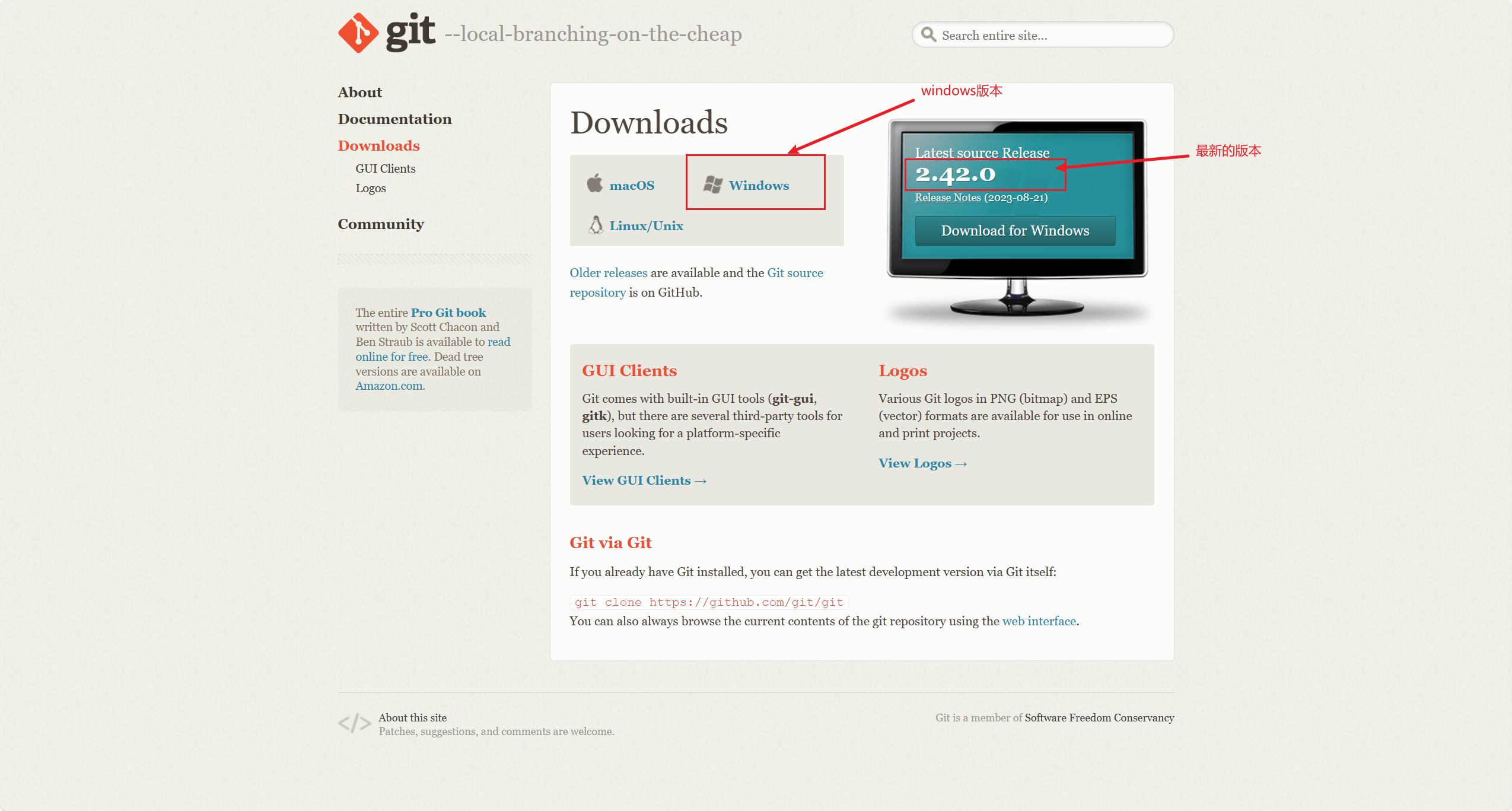 打开git官网下载地址Git (git-scm.com),按照如下步骤下载git安装包到自己的电脑: