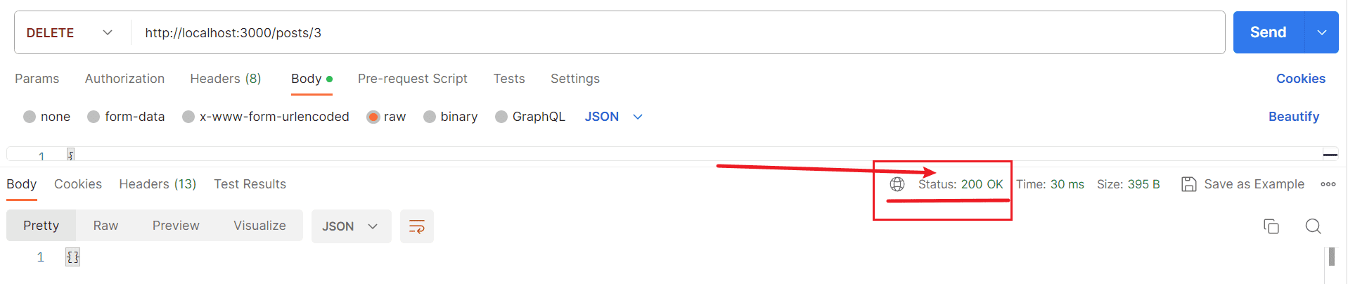 - 删除成功的 Status 返回的http状态码为 200 ;
