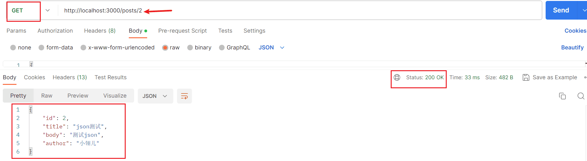 在上面我们已经创建了三个接口,现在我们可以通过postman或者自己编写代码测试,下面通过postman测试http://localhost:3000/posts接口